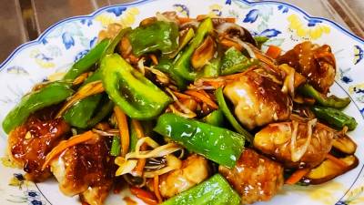 4のフライパンに2の野菜を入れて色よく炒める。油が全体に回ったら豚肉を戻し入れ、3を加える(コクのある黒酢を使ったたれを、仕上げにサッとからめる)。たれがからまったら、でき上がり。