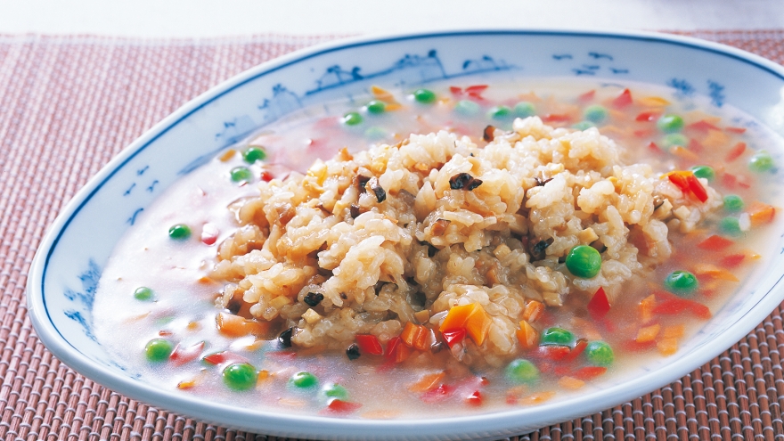 器に蒸し上がった中国風おこわを盛り、8のあんを注ぐ。