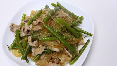 ちぎりいんげん、豚肉、春雨の炒め煮