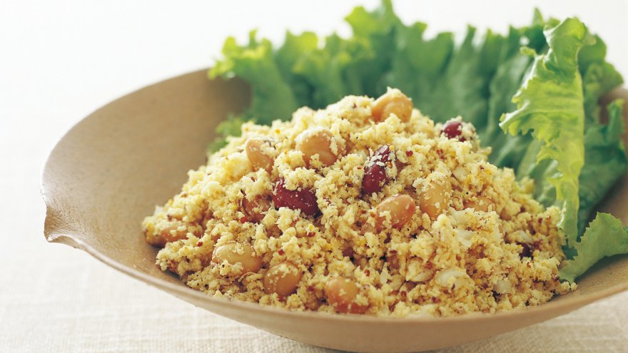 マスタードをきかせたドレッシングで、おからを洋風サラダに。豆も加えて、食物繊維づくしのサラダです。