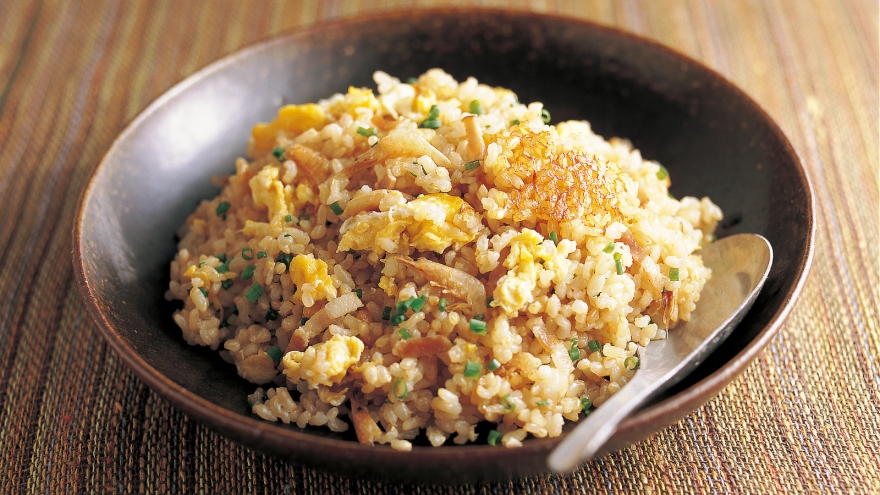 玄米のパラリとした食感はチャーハンにぴったり。ごま油や桜えびの豊かな風味が嬉しいです。