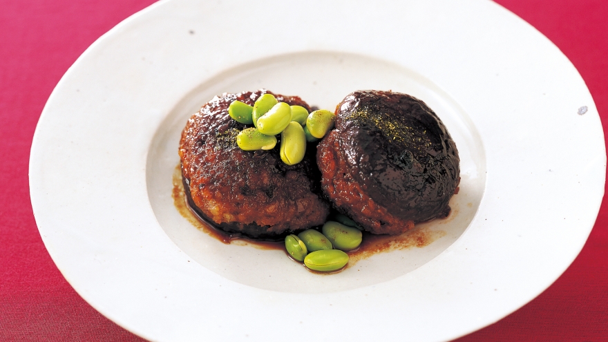 1のたれを回しかけ、上下を返してたれをからめながら煮詰める。器に盛って枝豆をあしらい、好みで粉ざんしょうをふる。
