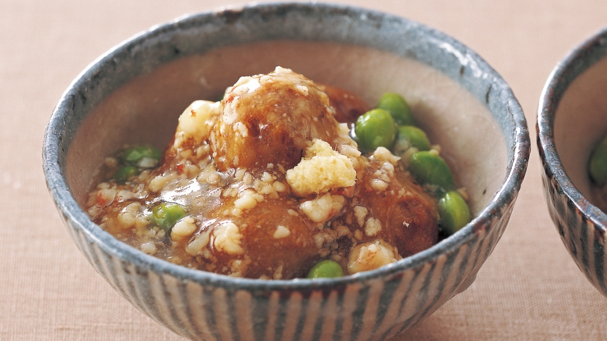 カリッと揚げた里芋に、えびのうまみが凝縮したアツアツのあんをトロリとかけていただきます。
