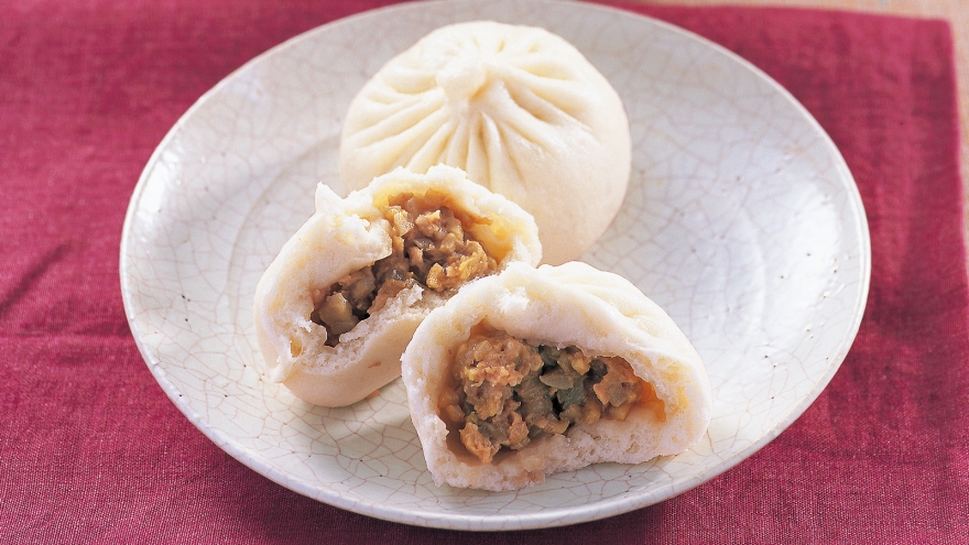 なすを加えることと、豚ひき肉は脂の多いものを使うことがジューシーに仕上げるポイント。あんはよく冷やしておくと、生地で包みやすくなる。