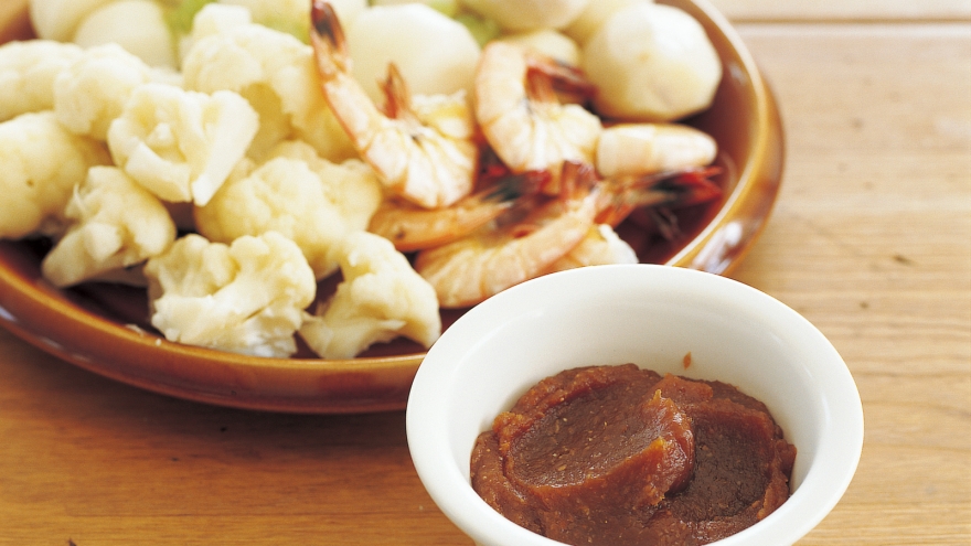 蒸し野菜のからしみそディップ