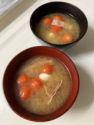 ベーコンとチンゲンサイのコクみそ汁