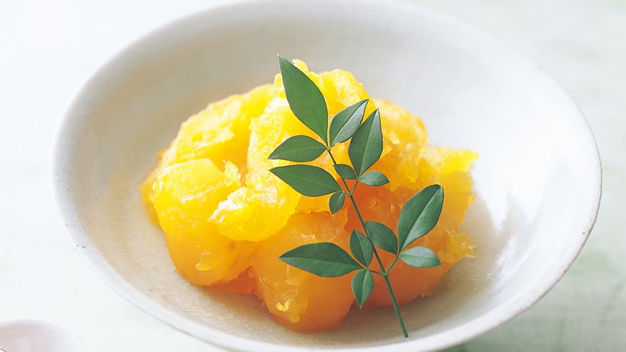 練りすぎないように煮詰めると透明感のあるつややかなきんとんになります。