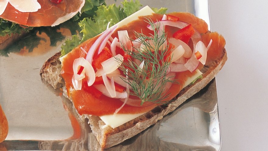 北欧でサンドイッチといえば、パンに具をのせたもの。好きな具をのせてどうぞ。