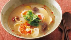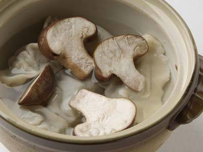 牛乳で煮るさっぱりとしたクリーム煮です。最初にえびを焼くのがおいしさの秘けつ。