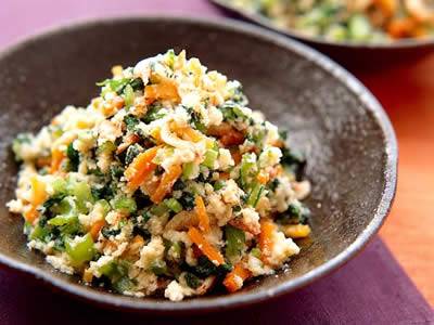 マスタードをきかせたドレッシングで、おからを洋風サラダに。豆も加えて、食物繊維づくしのサラダです。