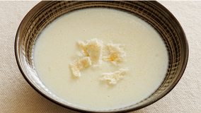 身近な材料でつくれる簡単なスープです。材料をバターで炒め、最後に牛乳で煮てクリーミーに。