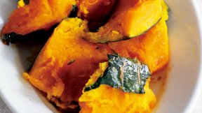 かぼちゃは、電子レンジと相性のよい野菜ナンバーワン。煮るよりホクホクとして甘く、バターじょうゆもよくなじみます。