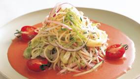 新たまねぎときゅうりでサラダ感覚の組み合わせ。たらこに砂糖を加えることで味がまろやかになります。