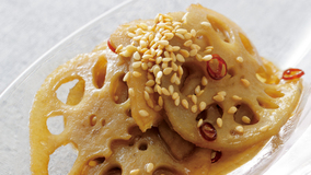 水菜の彩りと食感で、きんぴらを華やかに仕上げました。にんにくと素揚げれんこんがアクセントです。