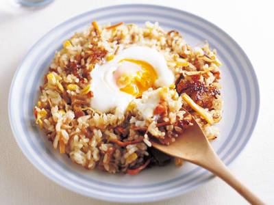 蒸し汁を使って、うまみのきいたご飯に。いっしょに炊いたしょうがの香りもさわやかです。青じそやたたききゅうりなどと一緒に楽しんで。