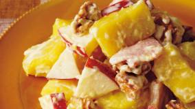 なめらかなホワイトソースにさつまいもの甘さがおいしい。ベーコンの塩けが味のアクセントに。