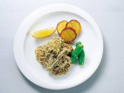 低エネルギーのささ身なら揚げ物でも安心です。おぼろ昆布をまぶしてうまみをアップさせます。