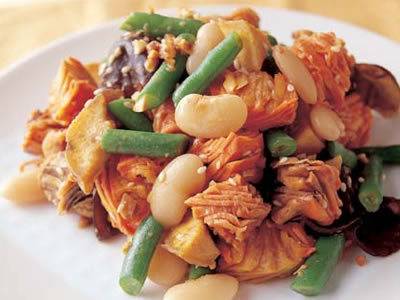 四川省の家庭料理をアレンジ。香ばしいソースがアクセントに。天日干しした野菜の甘みや歯ごたえを味わってください。