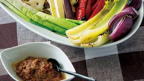 八丁みそを加えることで、和洋折衷のディップができ上がり。まろやかで味わい深く、香ばしく焼いた野菜との相性は抜群!