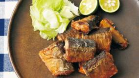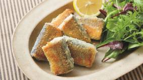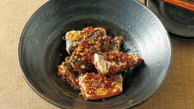 小麦粉をさんまにつけて焼くので、たれがよくからみ、照りよく仕上がります。ピリ辛でご飯がすすむおかずです。