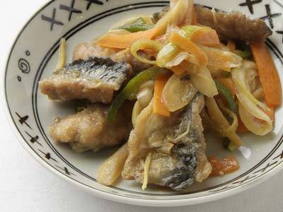 小麦粉をさんまにつけて焼くので、たれがよくからみ、照りよく仕上がります。ピリ辛でご飯がすすむおかずです。