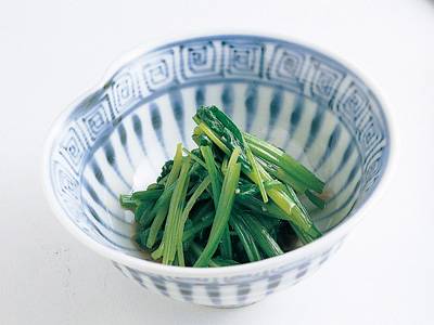 切りごまを使ったあえ物を「朝地あえ」と呼びます。春菊とせり、それぞれの香りと苦味を生かして、春ならではの味に仕上げましょう。