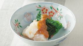 色よくゆでたせりと帆立ての甘みに、からしをきかせた酢みそが相まって爽やかにハーモニーを奏でますよ。まさに春の兆しの味わいです。