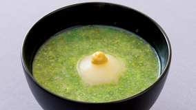 はまぐりのうまみたっぷりの煮汁に浸したほろ苦い野菜や山菜は、春の里を思わせる一品です。