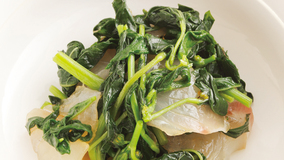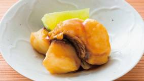 昆布だしベースの煮汁で蒸し煮にし、バターも加えてまったりと仕上げます。骨付きの切り身をそのまま使って、骨のうまみをとり込み、煮汁を片栗粉でとじて余すところなく味わう“始末の精神”の逸品です。