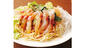 いつものそうめんをもっとおいしく。季節の野菜とゆでだこをドレッシングで合わせます。