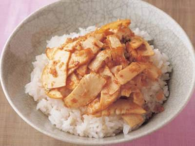 菜の花のほろ苦さやたけのこの食感が春らしいカレー。たまねぎは、水を加えながら炒めることでコクが全体に広がります。