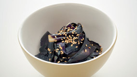 なすの皮をつかってきんぴらに。むだなく利用しましょう。