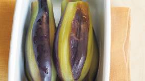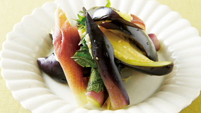 なすは皮をむいて、上品な味わいとひすいのような色合いを満喫しましょう。皮はきんぴらにして、むだなく利用します。
