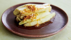 油で揚げたり、炒めたりしてから煮るオランダ煮。今回はなすを焼いてからじっくり煮るので皮はツヤツヤ、ヘタも食べられるくらい柔らかです。