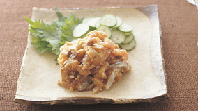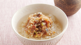 たたいたあじに、みそを加えて香りよく仕上げます。だしをかけた大人味が、大好評です。