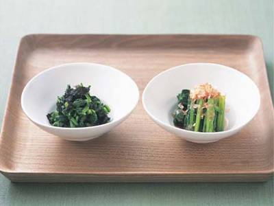 副菜の定番。ゆでたほうれんそうを、だし割りじょうゆに浸すことから「おひたし」の名があります。