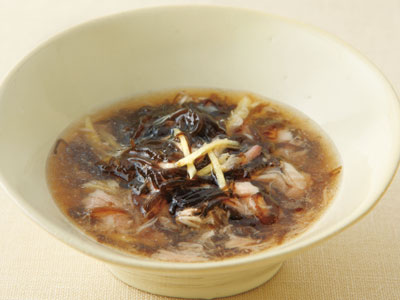 酸味をきかせた、栄養バランスのよい温かいスープ。冷たくしてもおいしく、そうめんを加えて食べても。