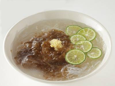 冷たいスープに、ツルツルの春雨ともずく。そうめん、くずきり、ところてんなどでもおいしいですよ。