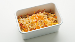 揚げたあじを大根おろしたっぷりのたれにつけます。香味野菜ですっきりしているので、思わず箸がすすみます。