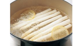 グリーンのものより堅く、アクもあるので、じっくりと時間をかけてゆでます。温かいうちにマヨネーズなどをかけていただきましょう。
