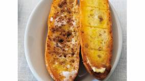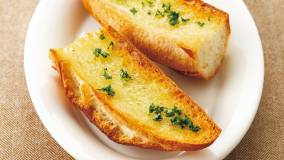 手軽にできる香ばしいガーリックトースト。バターとチーズを加え、こっくりとしたおいしさを楽しみます。