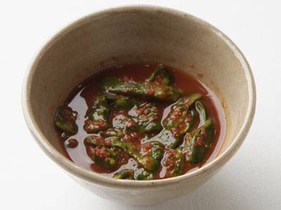 キムチをからめたパスタに大根おろしをたっぷりのせて。ピリ辛味とさっぱり感が絶妙にマッチした一皿です。