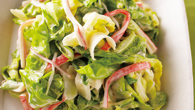 キャベツのほろ苦さとごまの風味、かにかまのうまみで味わい深いおかずサラダです。