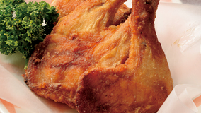 スパイス入りの下味と二度揚げがおいしさの秘けつ。いつもより大きくてジューシーなフライドチキンはおもてなしにぴったり!