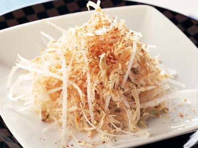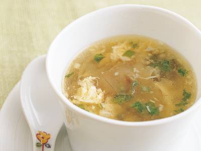 ザーサイから出る塩けと、ピリリとした黒こしょうがきいたスープです。ザーサイの独特な歯ごたえもおいしさの一つです。