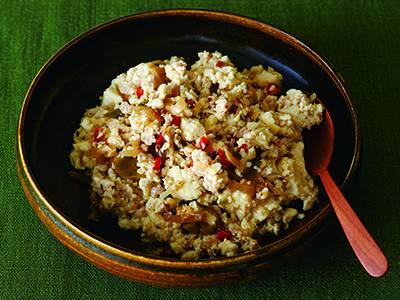 牛切り落とし肉をふんわりまとめてパワフルにしました!たっぷりの香味野菜が、もう、たまりません。