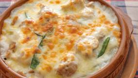 たらは小麦粉をまぶしてパサつきを防ぎます。バターで焼き、白ワインと生クリームを順に加えて煮れば、豊かなコクと風味が楽しめます。