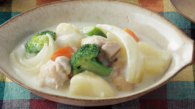 鶏肉とうまみの出る野菜を組み合わせた和風シチュー。昆布だしで煮て、じゃがいもで自然なとろみをつけ、すっきりと仕上げます。具だくさんのみそ汁をつくる感覚で手軽に。