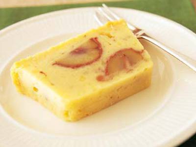 パウンドケーキ生地にスイートポテト生地をマーブル状に混ぜて焼き上げます。仕上げに黒ごま入りのみつをかければ、大学いものようなおいしさに!