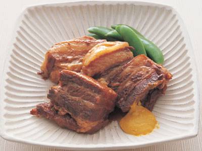 砂糖をサラダ油で溶かしたカラメルで炒めて、コクをつけ、黒ごまソースで香ばしく仕上げた炒め物です。スナップえんどうのシャキシャキした食感と甘みがアクセントで美味しい。
